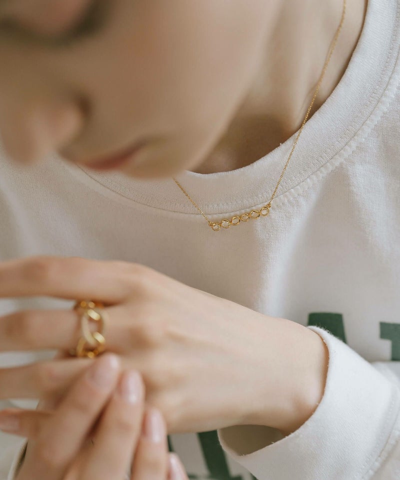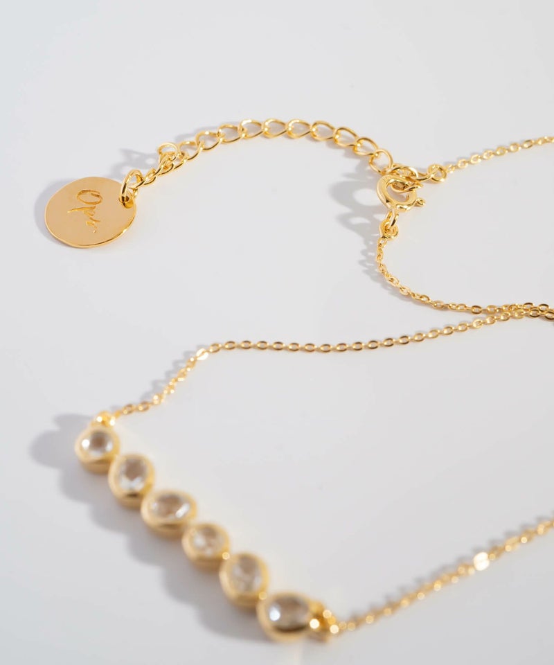 ・透明感のあるホワイトクォーツを6石並べた、バーデザインのネックレス