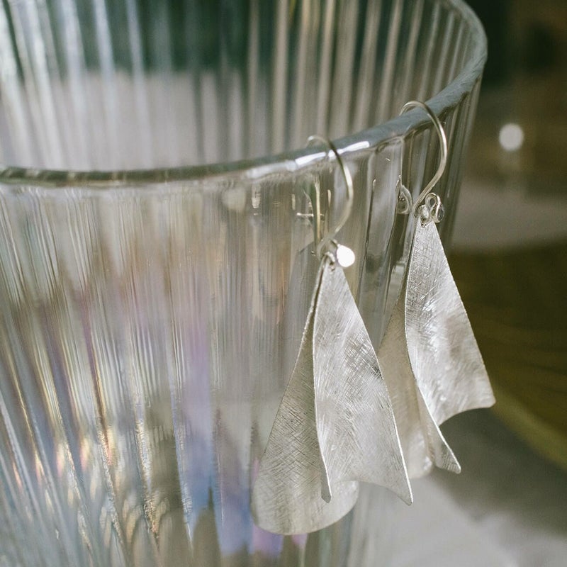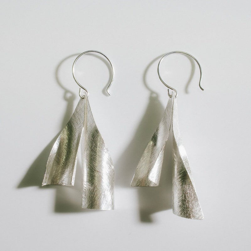 Silver925 Wavy Plate Hang Earrings