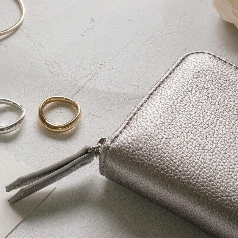安定性が高い金属のため変色しずらい特性がありますが、汗や皮脂・化粧品などの化学物質の付着より変色する場合があります。ご使用後は毎回綺麗に拭き取り、密封袋などで保管ください。