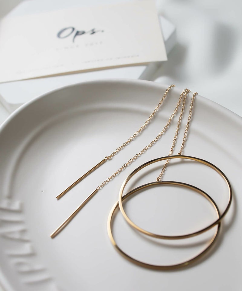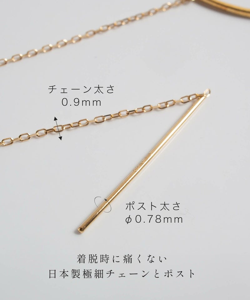 ・長めチェーンが揺れるチェーンピアス