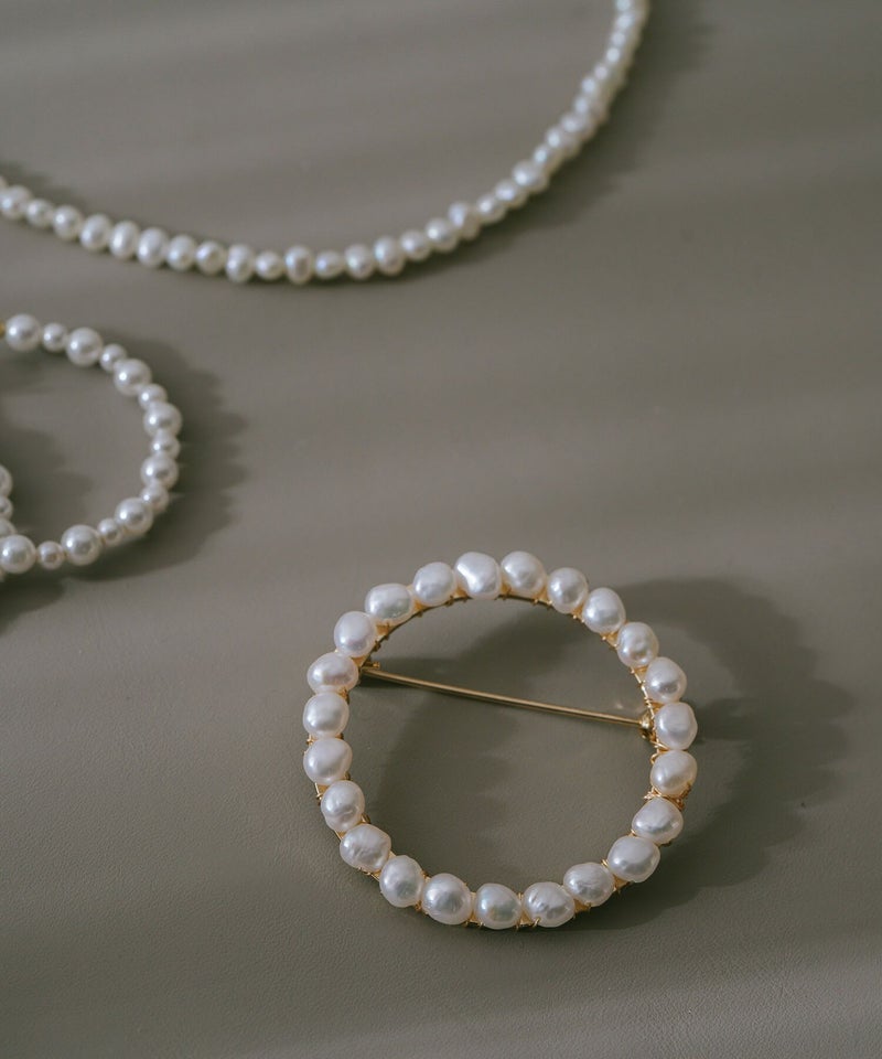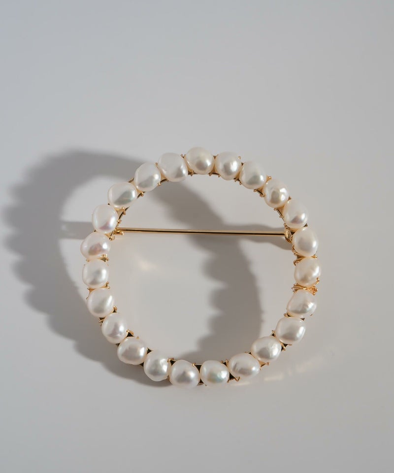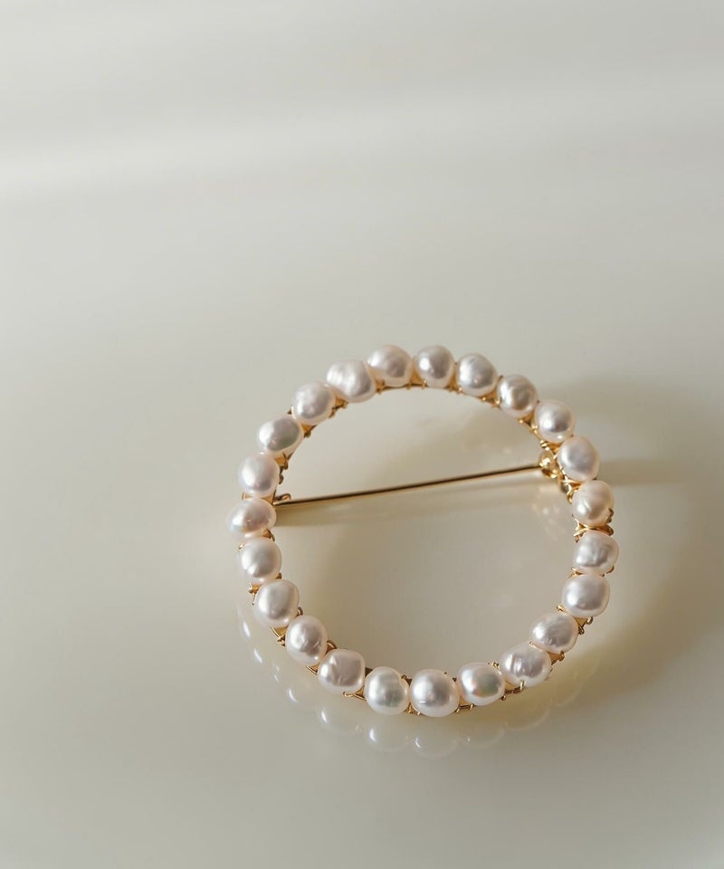 ・直径約4cmのサークル型パールブローチ