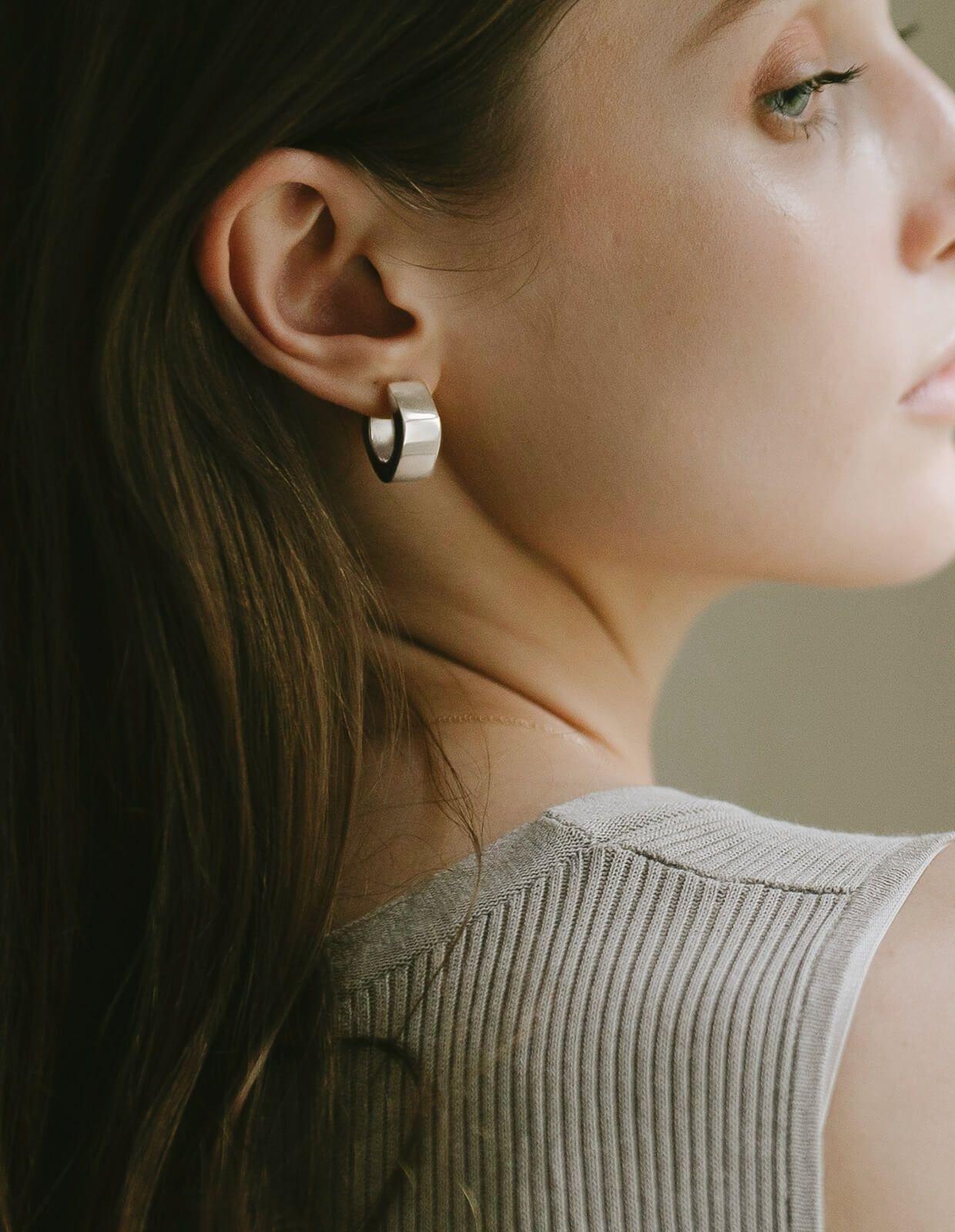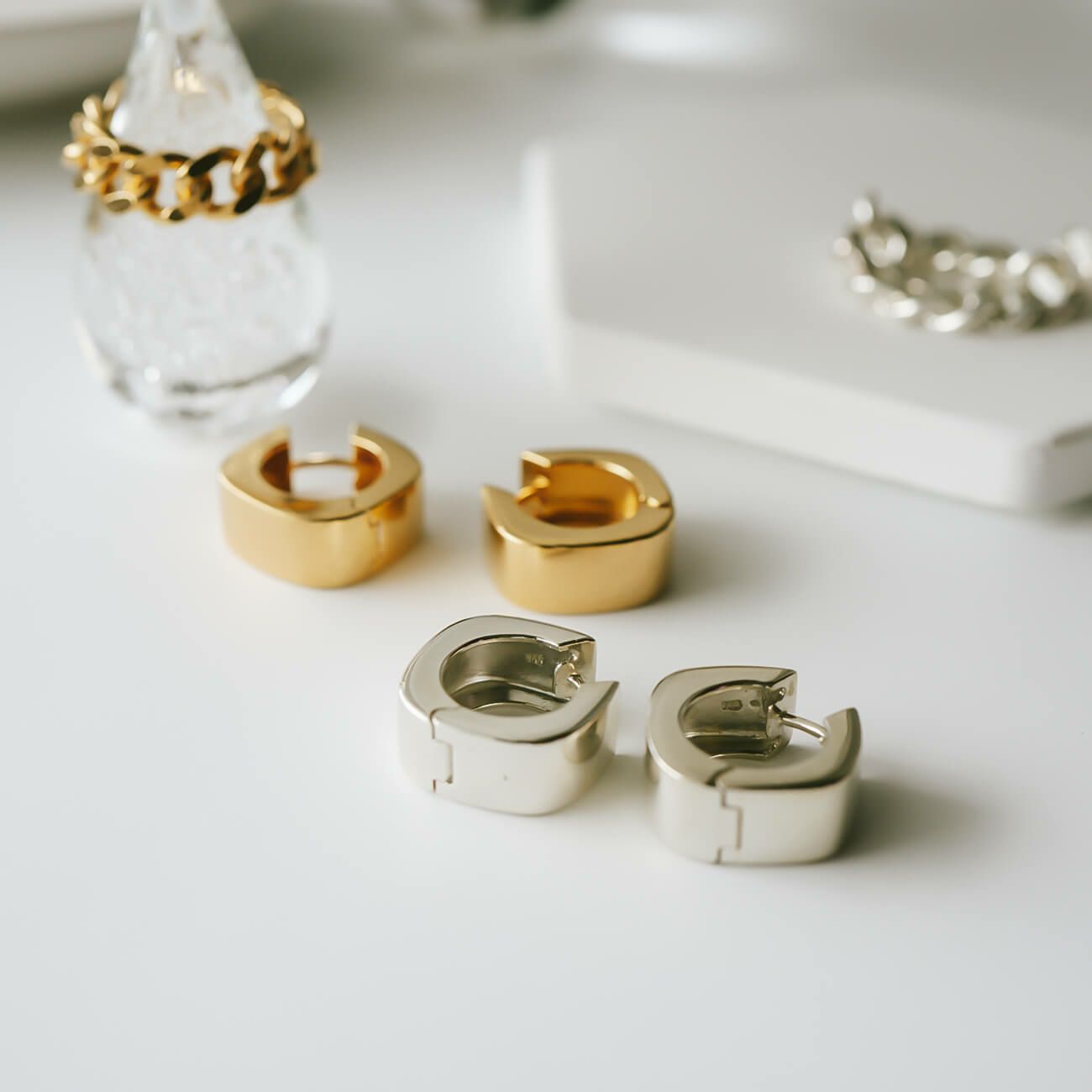 Silver925 Square Bold Hoop Pierce