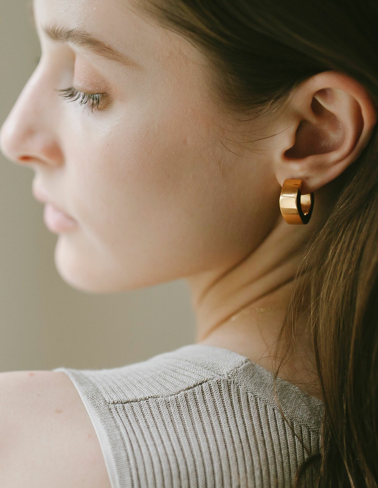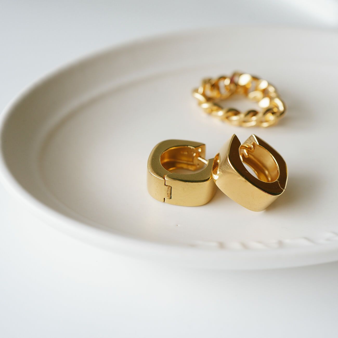・しっかりボリュームのあるスクエアフープピアス