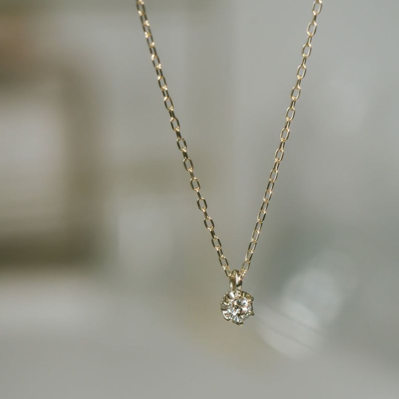 ・一粒のダイヤが煌めくゴールドネックレス