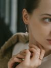 どの角度から見ても綺麗なピアスです。長さがあって揺れるピアスですが、細くて華美に見えず上品なので、職場にもつけて行っています。