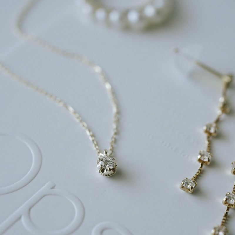 ・一粒のダイヤが煌めくゴールドネックレス
