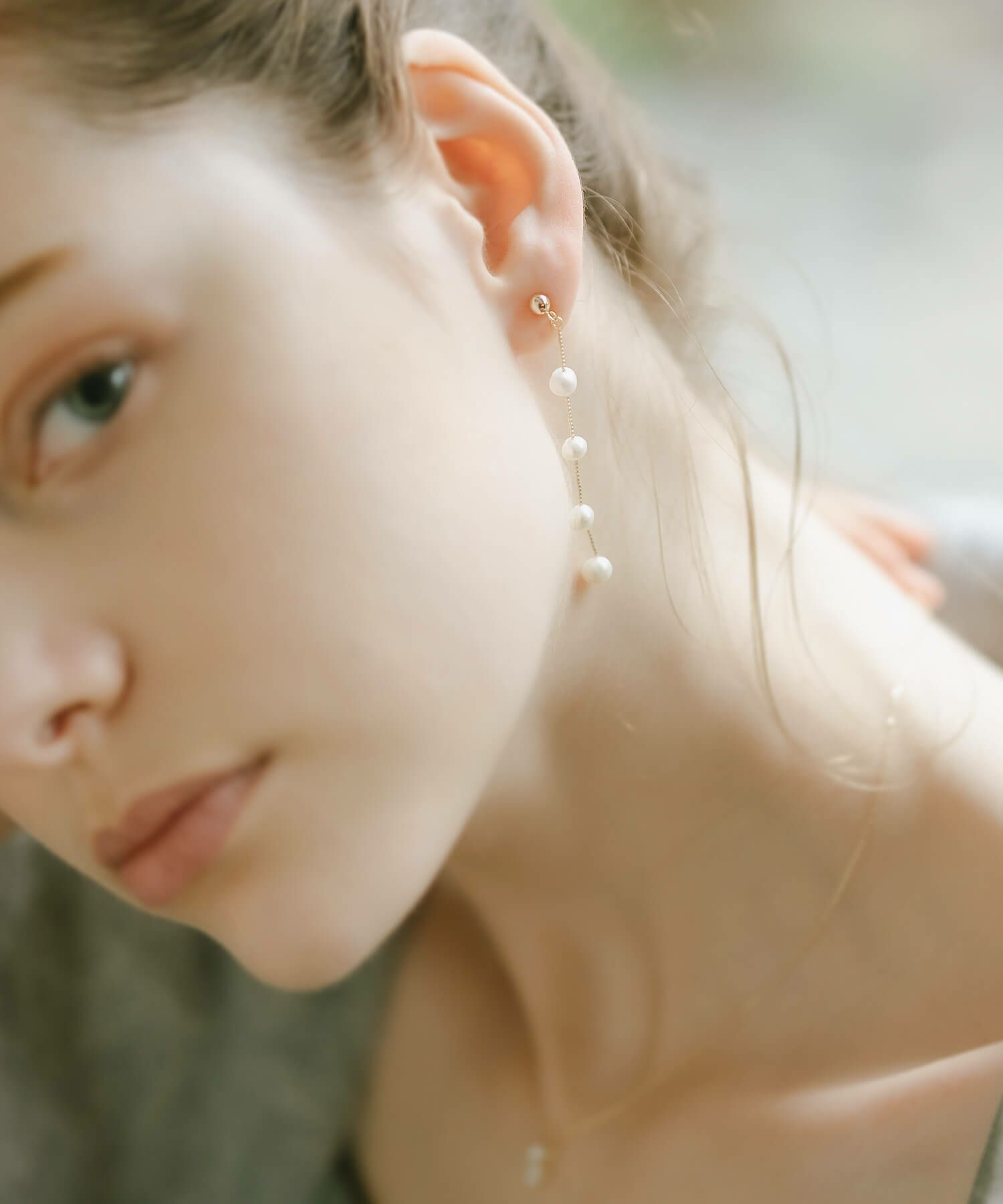・上品な輝きが耳元で舞う、4連パールピアス