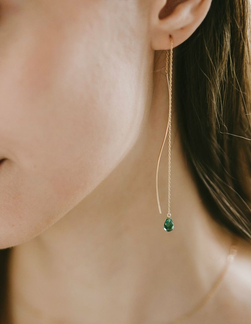 K10 Gemstone Wavy Long Earrings
