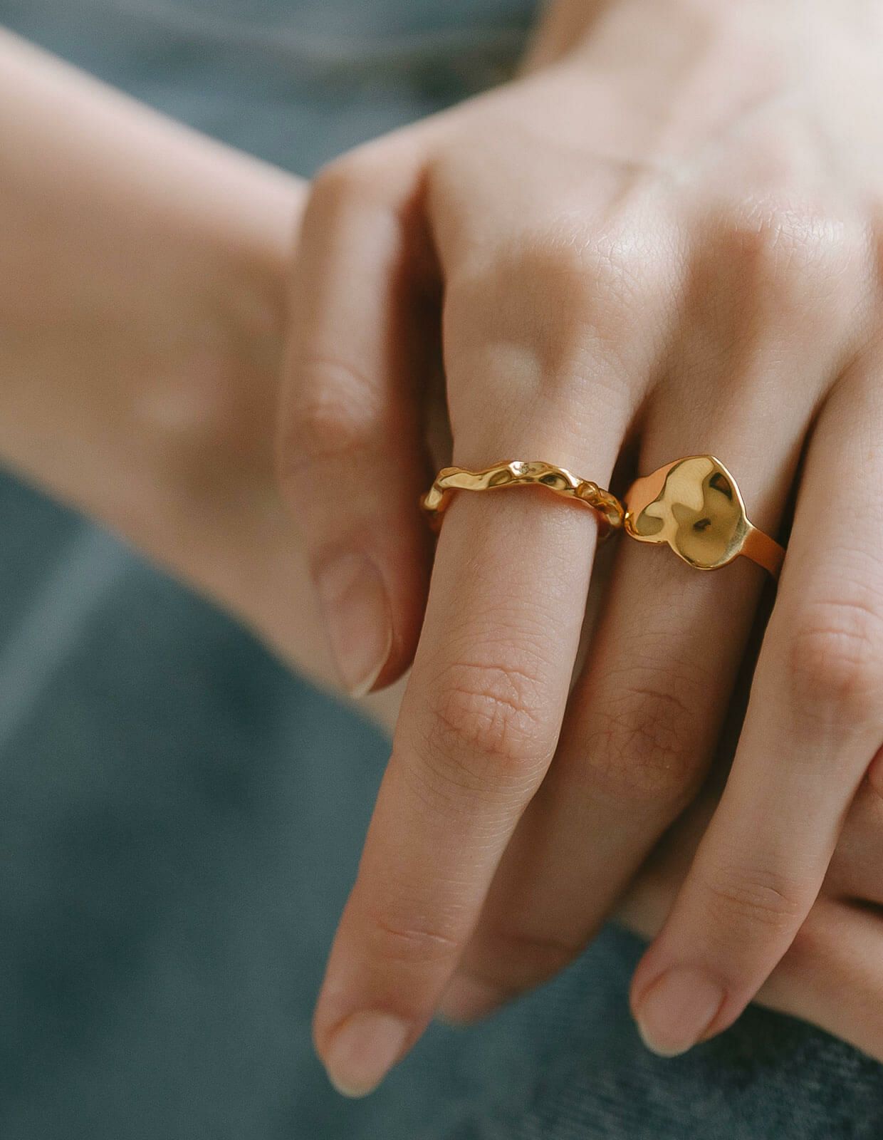 ・重ね付けもかわいいシンプルなウェーブリング