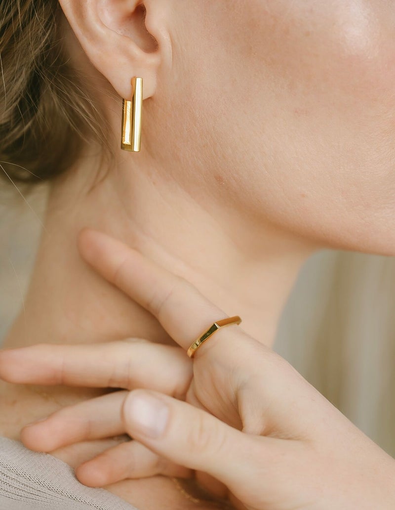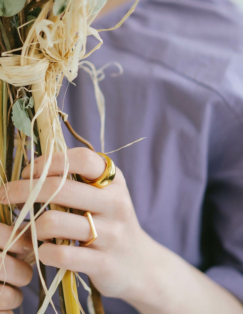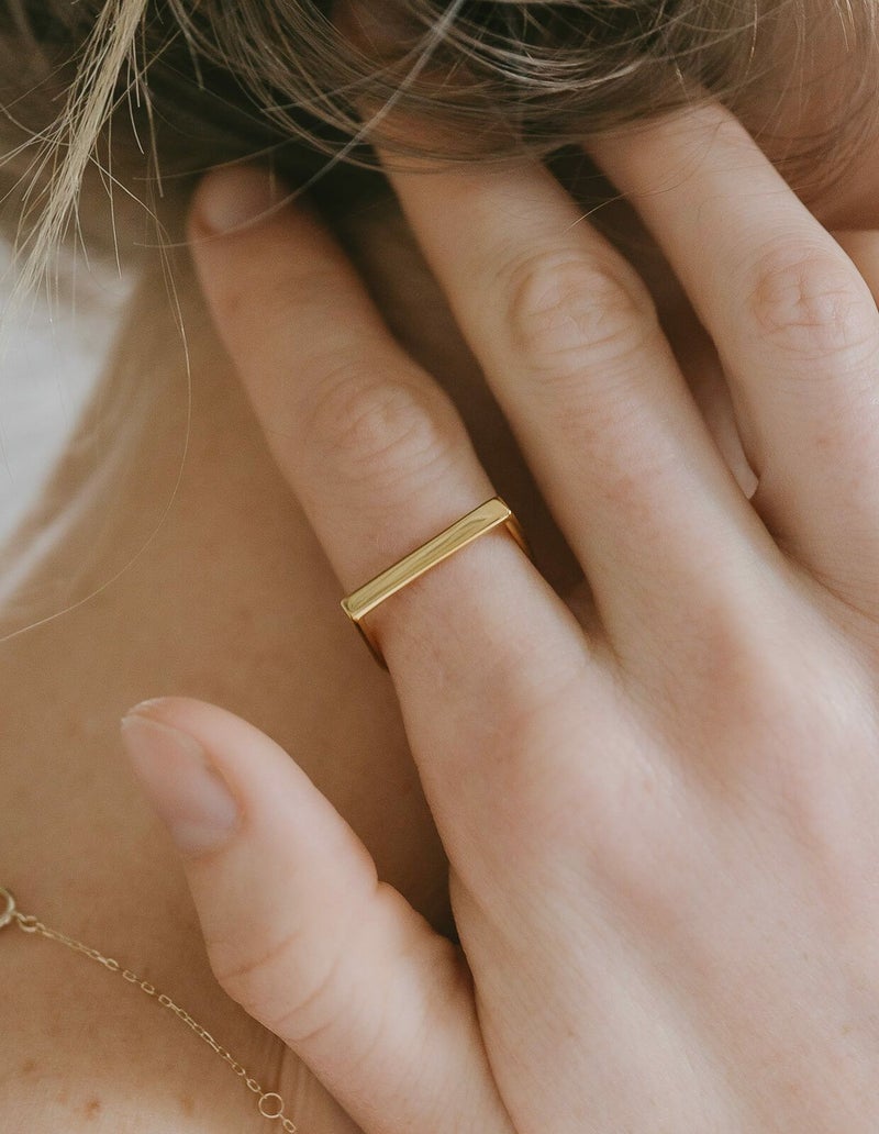 ・四角いアームの平打ちリング